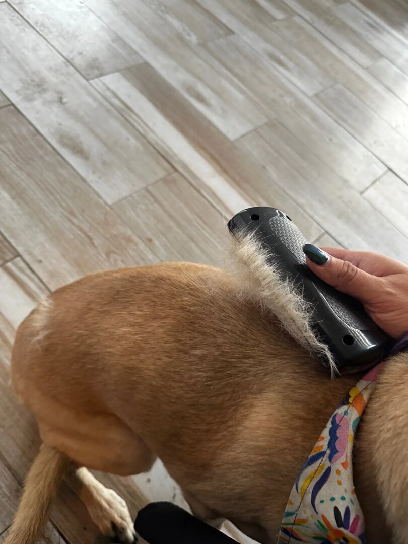• Ik was bang dat het zou trekken, maar het gaat juist zacht. Je ziet meteen hoeveel losse vacht eraf komt.