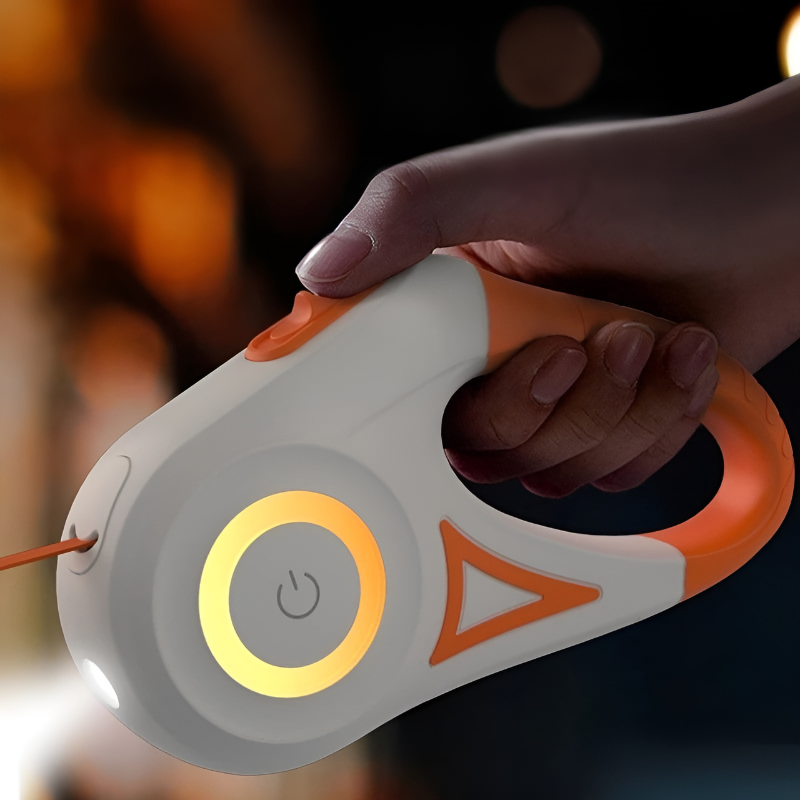 De intrekbare riem geeft je hond vrijheid tot 5 meter en houdt jou in elke situatie de baas. De ingebouwde zaklamp met RGB-lichtkring vergroot de zichtbaarheid in het donker, terwijl de 360° geleide opening en éénknopsbediening zorgen voor soepel, knoopvrij gebruik. De ergonomische TPR-greep ligt comfortabel en zeker in de hand, ook bij sterke honden.